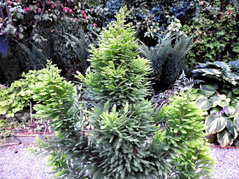 Karłowa, wolno rosnąca odmiana o zwartym, półkulistym pokroju.