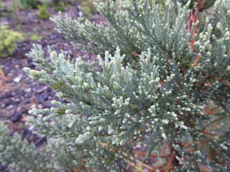Wolno rosnąca odmiana o złotych końcówkach pędów.