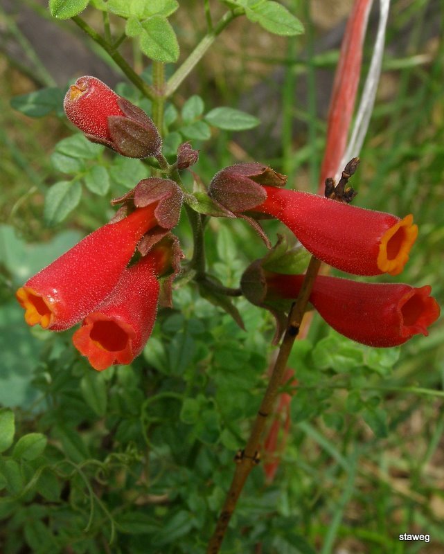 Ma podwójnie pierzaste liście i rurkowate kwiaty o długości około 3 cm, zebrane w luźne grona. Można ją sadzić przy altanach, na trejażach lub po prostu przy murze.