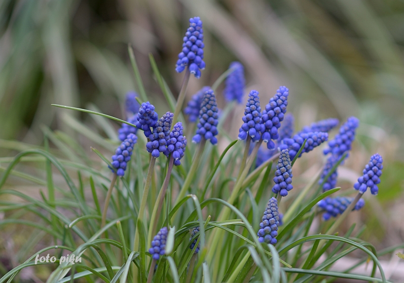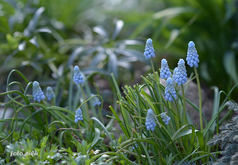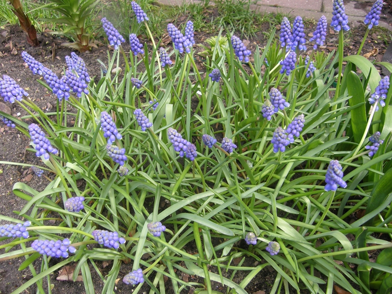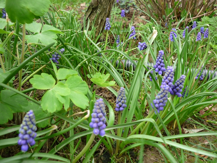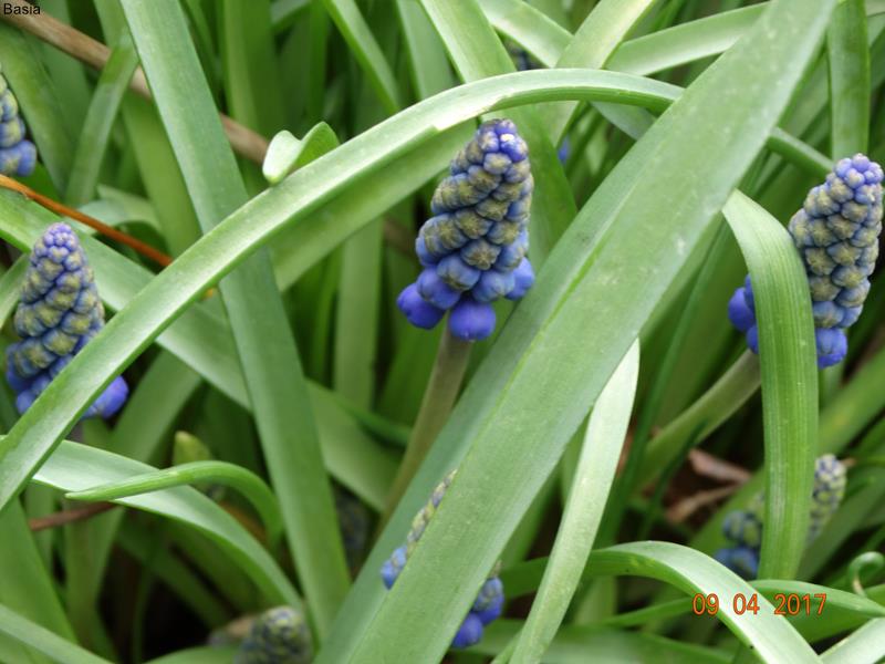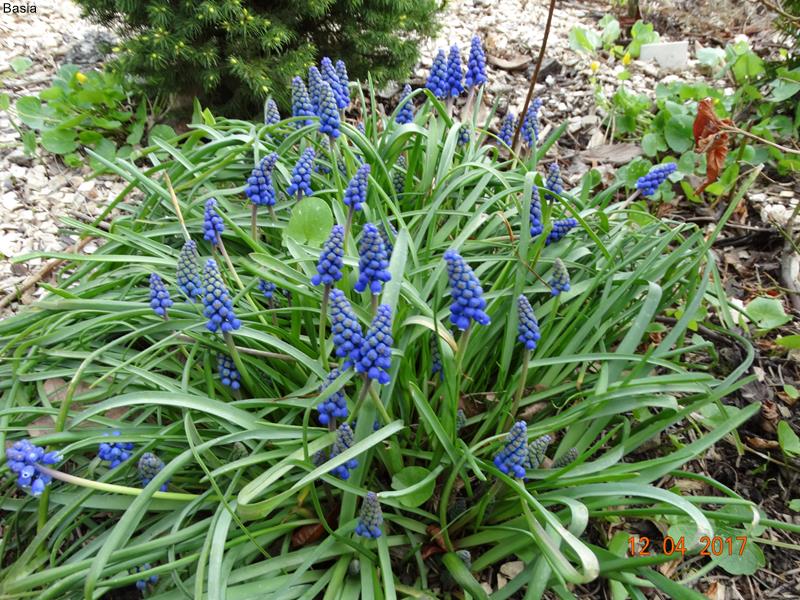 Szafirek Mount Hood, który u mnie nie kwitnie zbyt obficie. Ma więcej liściorów, niż kwiatów