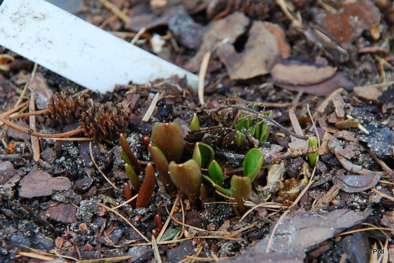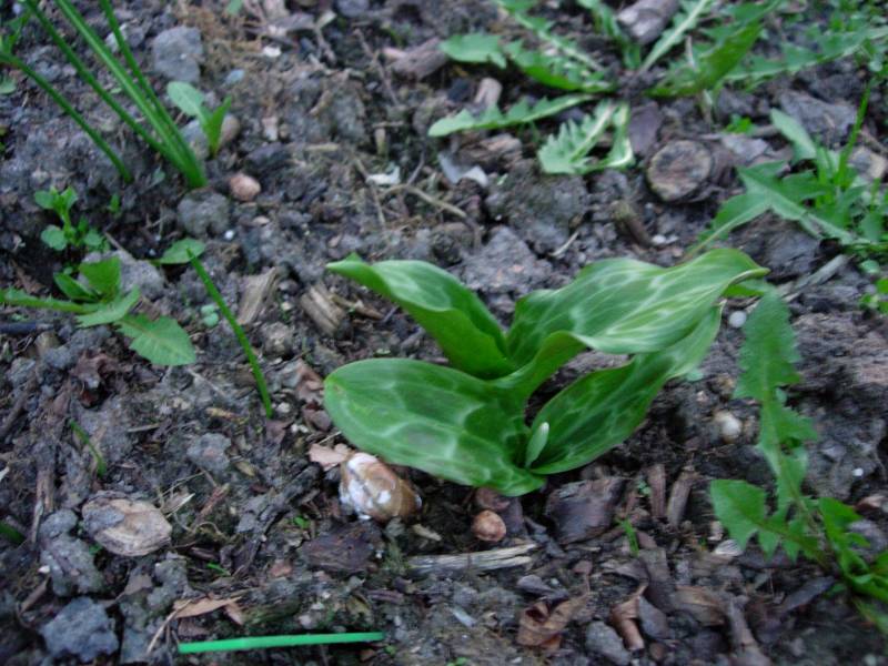 W osobnym poście, bo to tylko ciekawostka, w dodatku poparta słabym zdjęciem... Jeden z moich psizębów, Erythronium dens-canis 'Frans Hals', po przekwitnięciu zawiązał nasiennik. Był to pierwszy owoc, jaki widziałam w moim ogrodzie.