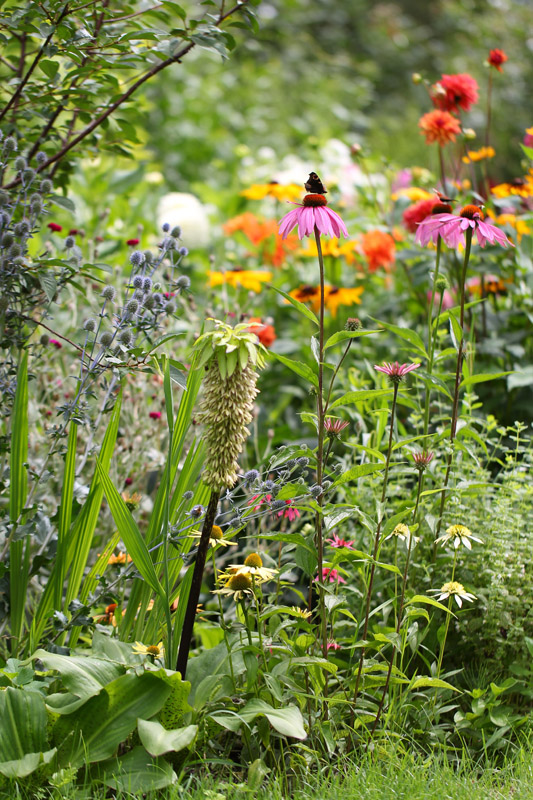 Czuprynek dwubarwny już dawno przekwitł a czuprynek jesienny dopiero wyłazi z cebul posadzonych wiosną: