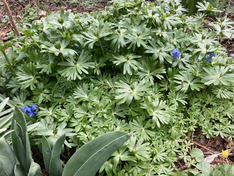 Ranniki u nas rosną swoim tempem, wcale nie najszybszym. Widzę zalążki siewek przy schwefeglanz, ale on tam już siedzi w ziemi z 3 lata. A zanim z nich będą kwitnące roślinki to kolejne 3 lata miną. Nie wiem jak inni to robią, że mają łączki, ja mam kępki. Sądzę je raczej w koszyczku, żeby gatunek nie mieszał się z siewkami, które się kiedyś pojawia przecież. Przyglądam się dwóm odmianom przywiezionym z Berlina i to będzie pomyłka. Jeśli pojedziemy zareklamuje