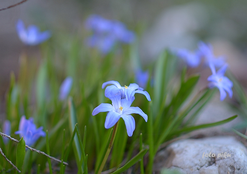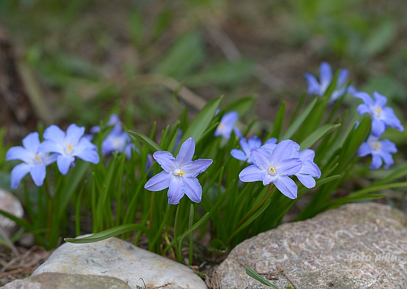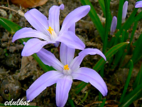 Chionodoxa luciliae); 2–3 kwiatki na łodyżce; w środku kwiatka niewielkie białe oczko, rozmyte na brzegach (pochodzi z zachodniej Turcji, z okolic Izmiru)