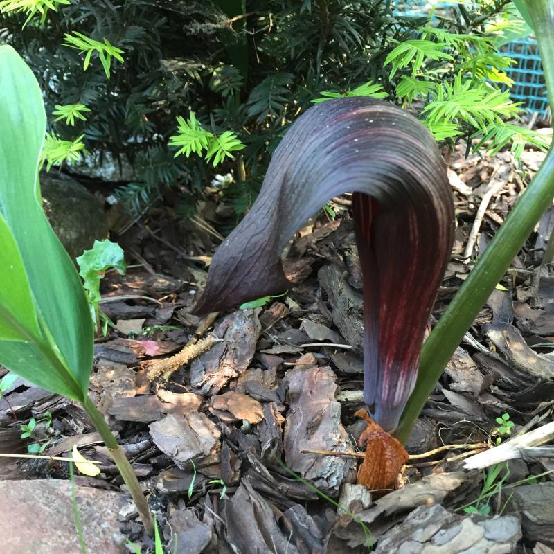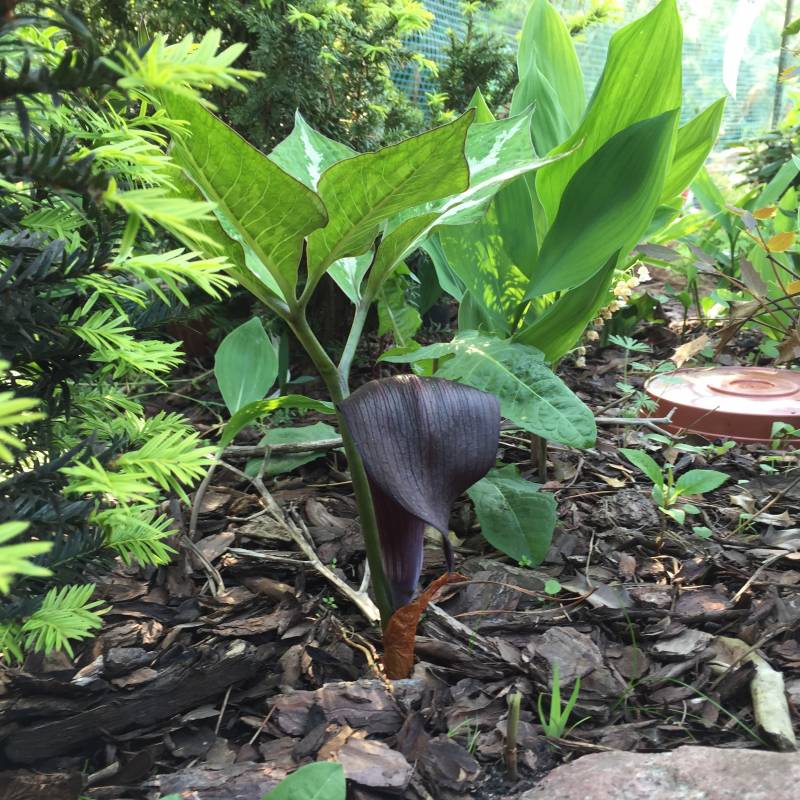 Wyrosła u mnie niemal na ścieżce Porównując z fotkami z internetów, wynikałoby, że to chyba Arisaema tortuosum, której nigdy nie kupowałam i nie miałam. Roślina jest bardzo wysoka- spokojnie mierzy 85-90 cm .