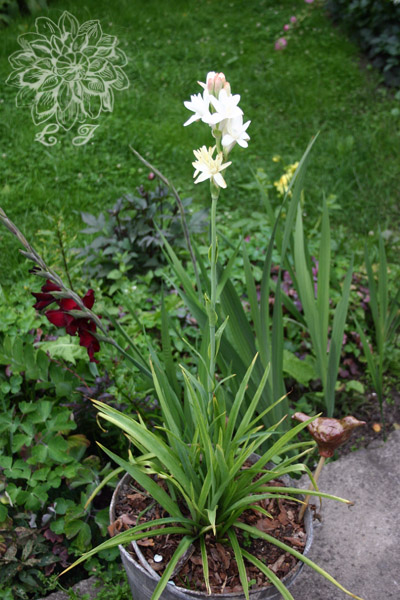 Roślina należąca do agawowatych. Pochodzi z Meksyku i dlatego potrzebuje lekkiej próchniczej gleby i słonecznego ciepłego miejsca. Ze względu na nasz klimat, rzadko się udaje, ponieważ w tak krótkim okresie wegetacji nie wytwarza wystarczająco solidnych cebul, by w kolejnym roku zakwitnąć. Ja po dwóch sezonach zrezygnowałam, bo efekt był nieciekawy, ale zapach przecudowny, ciężki, perfumowy. Ale chętnie bym spróbowała jeszcze raz, ale dość ciężko kupić cebule.