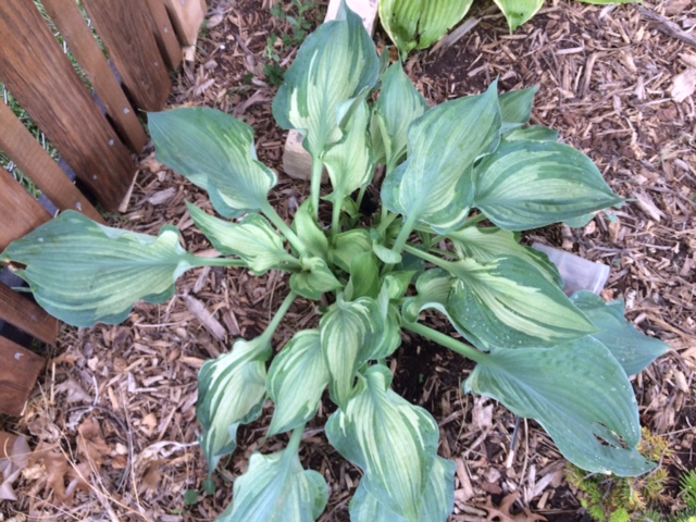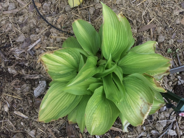 Bylam zdziwiona, ale jako pierwsze wyszly Inaho. Teraz ogrod jest zielony, ale nadal czekam na niektore spoznialskie hosty np Spilk Milk. Przymrozki uszkodzily liscie kolo polowy host, w tej chwili prawie skonczylam z ich wycinaniem. Dwie noce pod rzad byly 25-30C w dzien i ponizej zera w nocy. Niektore w ogole sie nie wybarwily jak powinny, np War Paint od razu wylazl zielony i taki pozostaje.