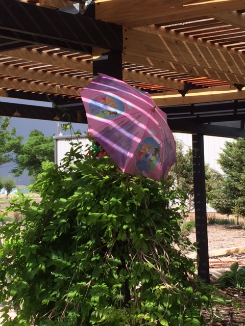 Pisklaki zabezpieczylam od slonca i gradu (wczoraj chmury burzowe byly i sobie poszly, za pomoca parasolki corki. Mamie drozd nie przeszkadza.