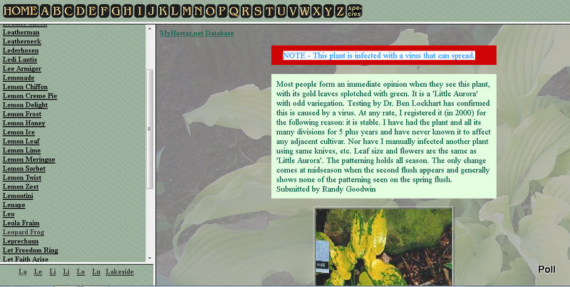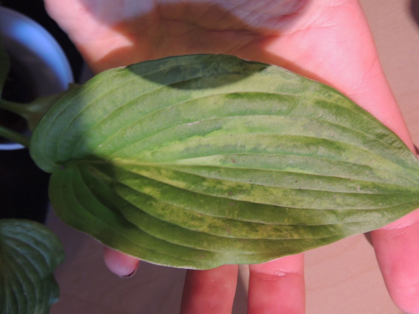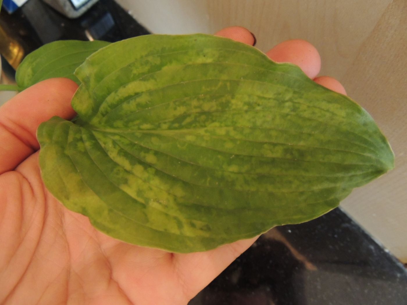 "Ta odmiana jest zainfekowana HVX, co spowodowalo pojawienie się zielonych plam na liściach. Choć choroba ta rozprzestrzenia się głównie poprzez przeniesienie w sposób mechaniczny (mój dopisek: świeży sok) (sekator, ostrza kosiarki), zarażonych roślin należy unikać w miarę możliwości.."
