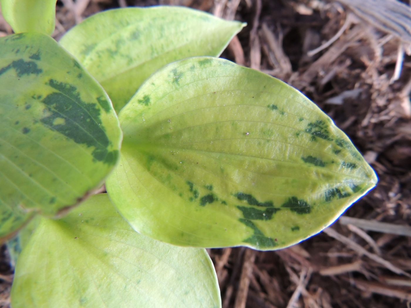 This cultivar is infected wiyh HVX,which causes the green splotchiness in the foliage. While this disease mainly spreads through mechanical transfer (pruning shears, mower blades) , infected plants should be avoided when possibile.