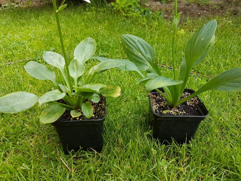 Kwestia kwiatów nowych sadzonek to jak sami zobaczycie wielka frajda. Przedstawiam dwie siewki wyhodowane z nasion hosty Golden Scepter, niby mamusia ta sama ale dzieci różne - nawet znacznie