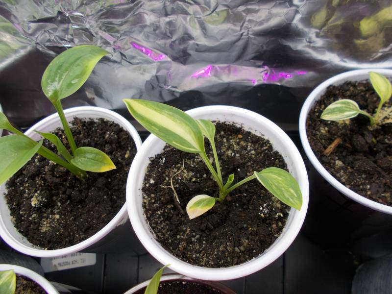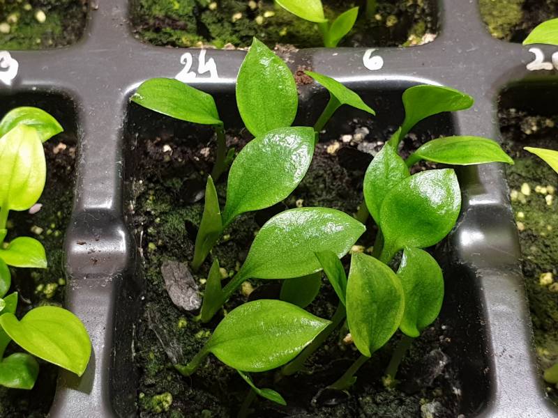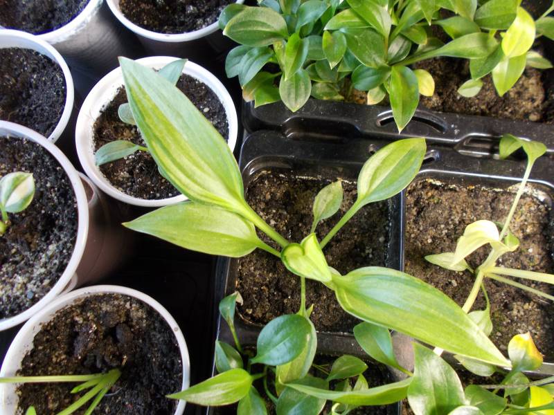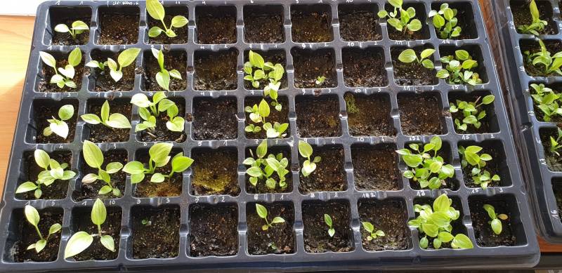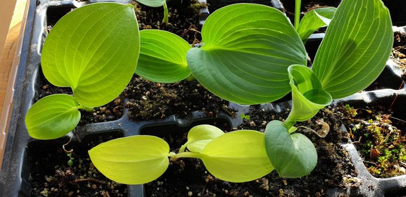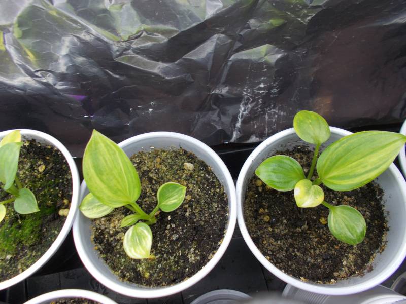 Nasiona host sieję już któryś rok ,ale dopiero teraz zauważyłam ,że powinno się je pikować po trzecim liściu . Przyśpiesza to ich wzrost , choć początkowo przez kilka dni tego nie widać . Pierwsze moje siewki przepikowałam z nasion , które siałam jako ostatnie pod koniec grudnia i kilka z pierwszych sianych w październiku . Teraz widzę jak ładnie przyrastają a nowe listki są dużo większe od tych wcześniejszych . Wczoraj przepikowałam ostatnie siewki z Breeders Love , Revolution , Lakeside Looking Glass i 3 najciekawsze z Candy Dish , choć wcale miałam tego nie robić , bo na stole miejsca już nie było . Ale jakoś wszystko się zmieściło .