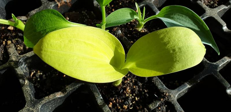 Tego z powodu stresu nie pamiętam. Rosną u mnie w kilku przegródkach w trzech wielopakach. Dziś olśnienie! Mój pierwszy chyba streaked z nasion zwykłych host.