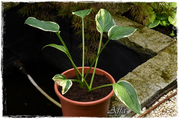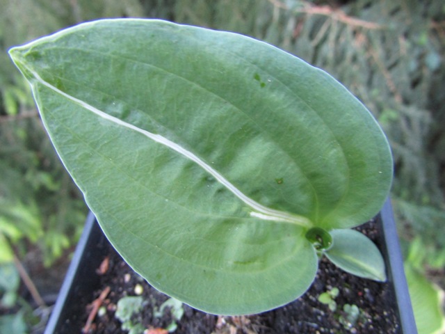 .W Zilisie znalazlam info, ze Neptune pochodzi od (Maekawa x Halcyon) x Salute. Przyjrzalam sie i wyglad nowego odrostu pasuje do Salute, z jej sklonnosci ado pionowo rosnacych lisci. Hmmm...