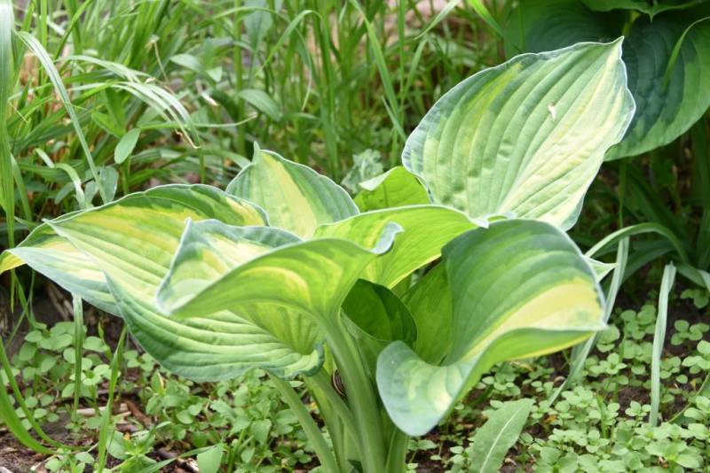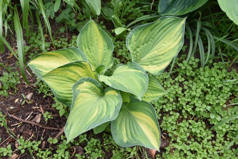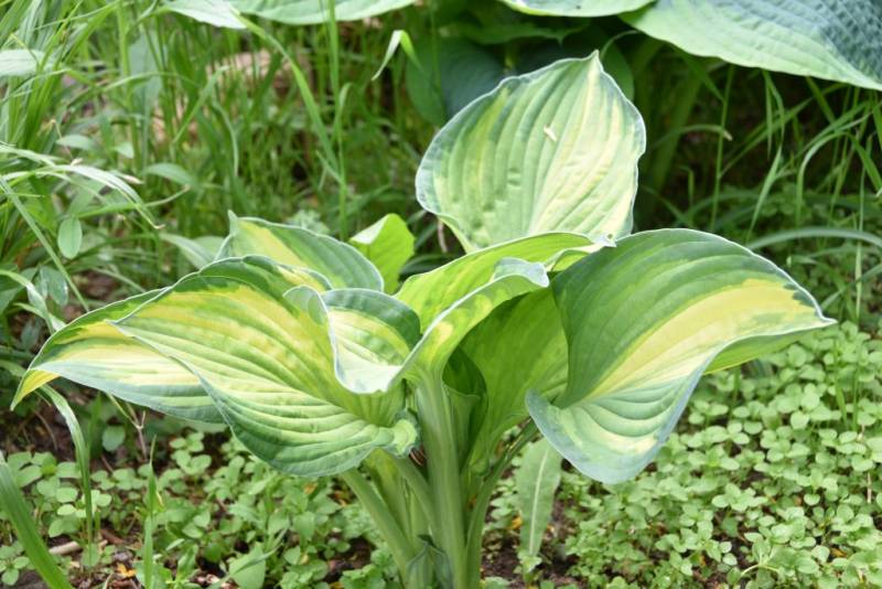 Hosta 'Queen Josephine' ciekawy sport w tym roku cały żółty...