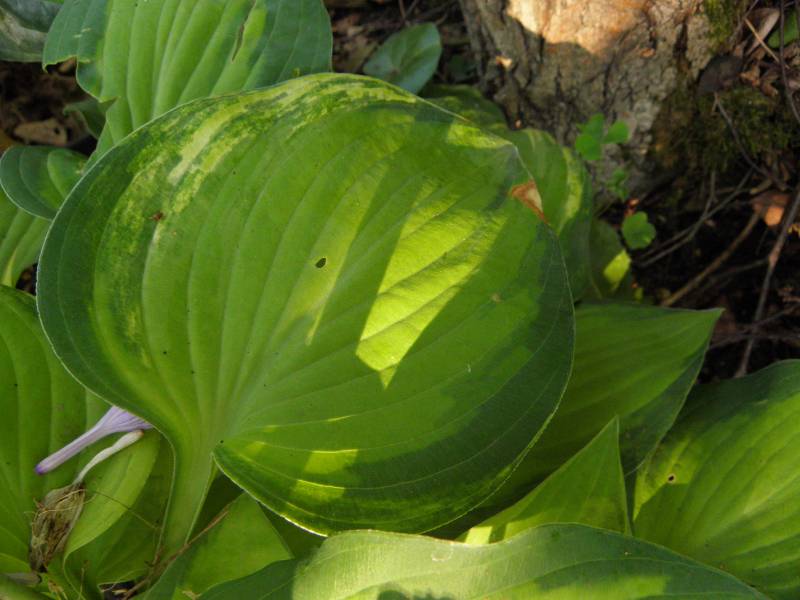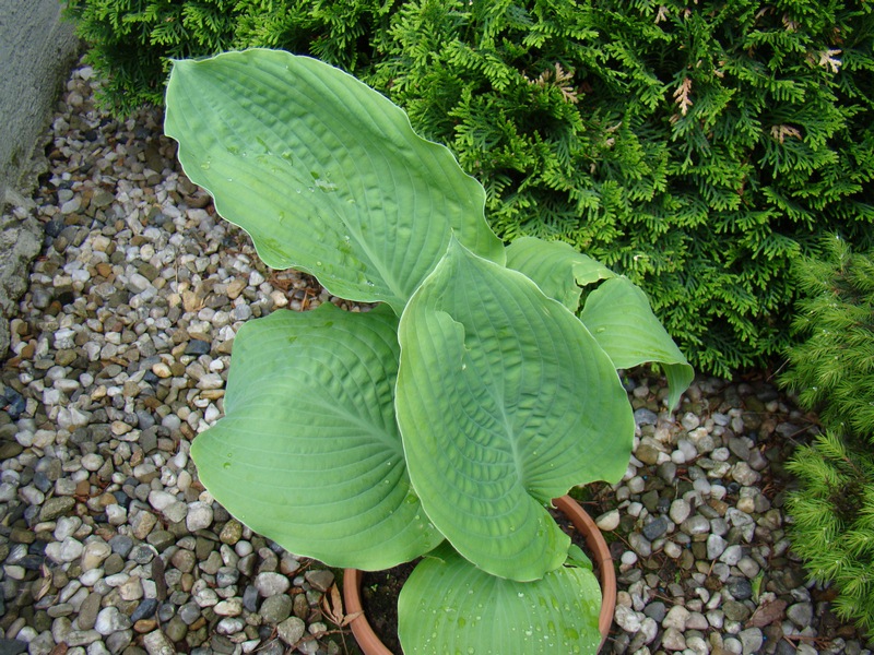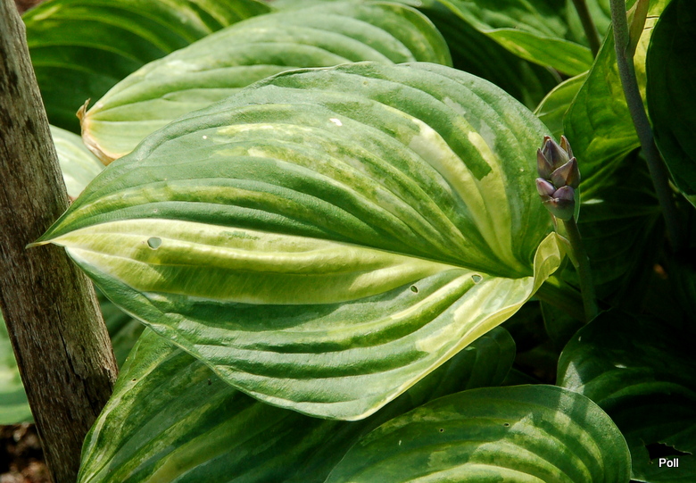W tym roku i u mnie pojawiły się mutacje. hu_rra Hosta Tappan Zee wypuściła żółty odrost, ale okupiła to wstrzymaniem rozwoju (znów mam tylko 1 kieł tej odmiany) Podobnie, jak w przypadku mutacji Beatki, w HL nie ma info o żadnym sporcie tej hosty