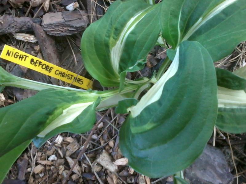 Hosta Night Before Christmas kupiona na Oazie w 2015 r , w tamtym roku wyglądała jak wcześniej pokazywana ta odmiana z wirusem hvx , , ale dałam jej rok i w tym liście z jednego kła wyszły w połowie . Czy to faktycznie wirus ?