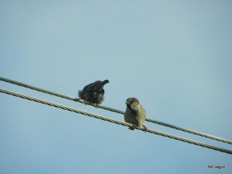 Mam kilka gniazd wróbli pod dachem. Trochę mnie to wkurza, że bałaganią, ale cały czas się krzątają w ogrodzie i zbierają owady. Tu akurat zbierał coś na brzozie.