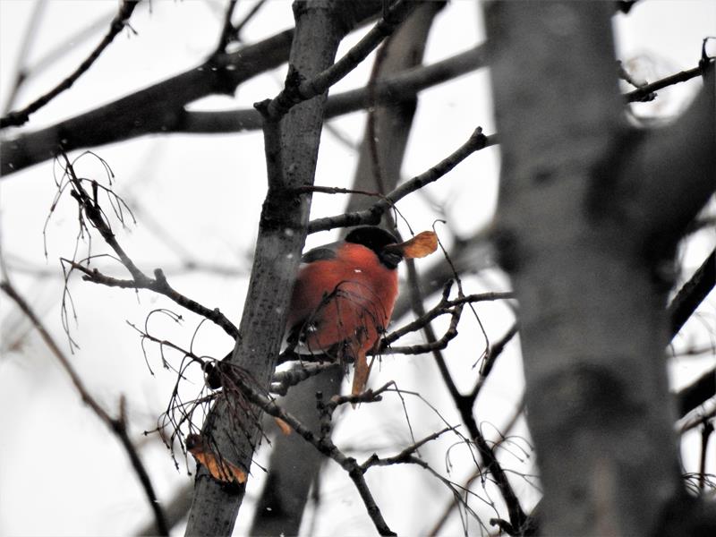 Basik! Przyleciał gil na noski klonu! U mnie jeszcze nie widziałam w tym sezonie, choć w zeszłym bywały regularnie :(
