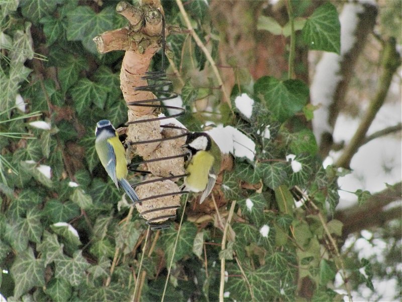 Ja zostawiam owoce na krzewach - ptaki sobie same znajdą. Jeśli robię kule tłuszczowe to zwykle daję smalec, łuskany słonecznik płatki owsiane i trochę maku. Ostatnio kupowałam gotowe kule, które okazały się bardzo kruche i rozpadały się w rękach, więc je przerobiłam ze smalcem - teraz już się nie kruszą i ptaki chętnie korzystają.