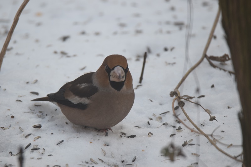 W ogrodzie zostawmy trochę winogron i innych owoców. U mnie chętnie żerują też na tujach (czyże, sikory), cisach (dzwońce, grubodzioby). Dobrze by w ogrodzie były słoneczniki, krzewy i drzewa wydające owoce smaczne dla ptaków: ligustr, jarzębina, dereń biały, kalina itp.