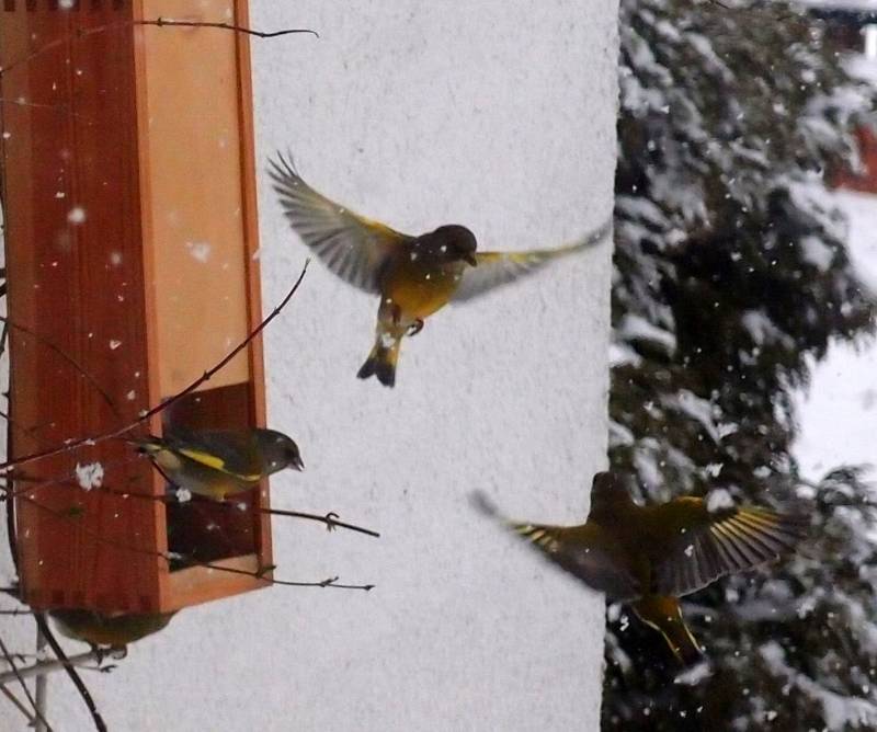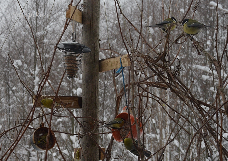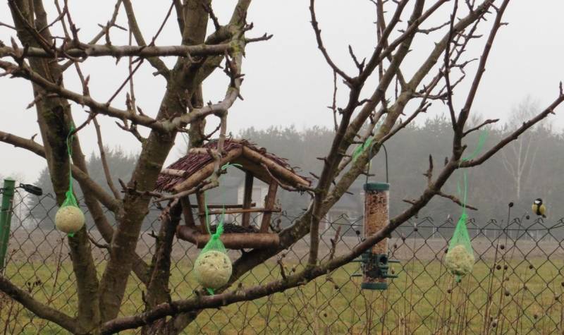 Najlepiej, by były drewniane, ale w kwestii karmników wyjątkowo musiałam się też posiłkować plastikiem, bo zimą w ogrodzie bywam 2 razy w tygodniu i nie mogłabym odpowiednio zadbać o ziarno w odkrytych karmnikach z daszkiem.