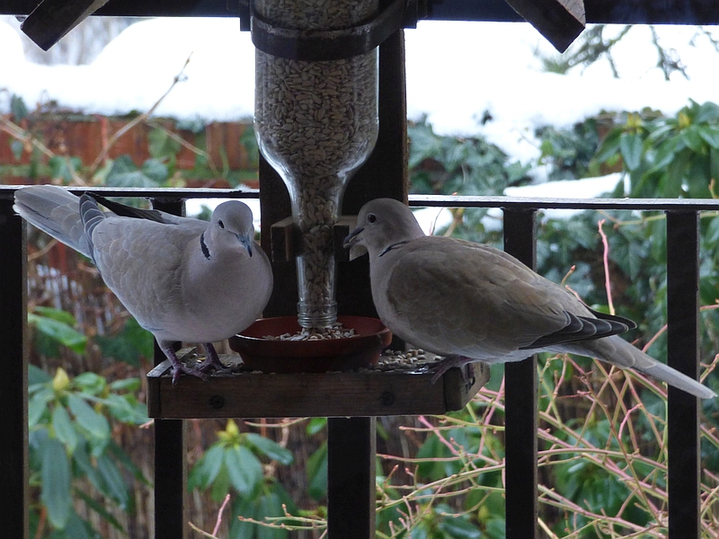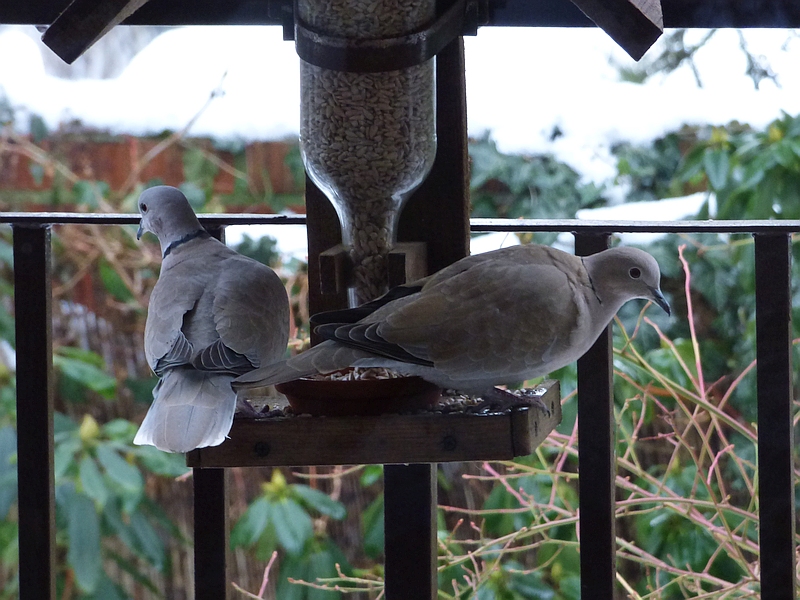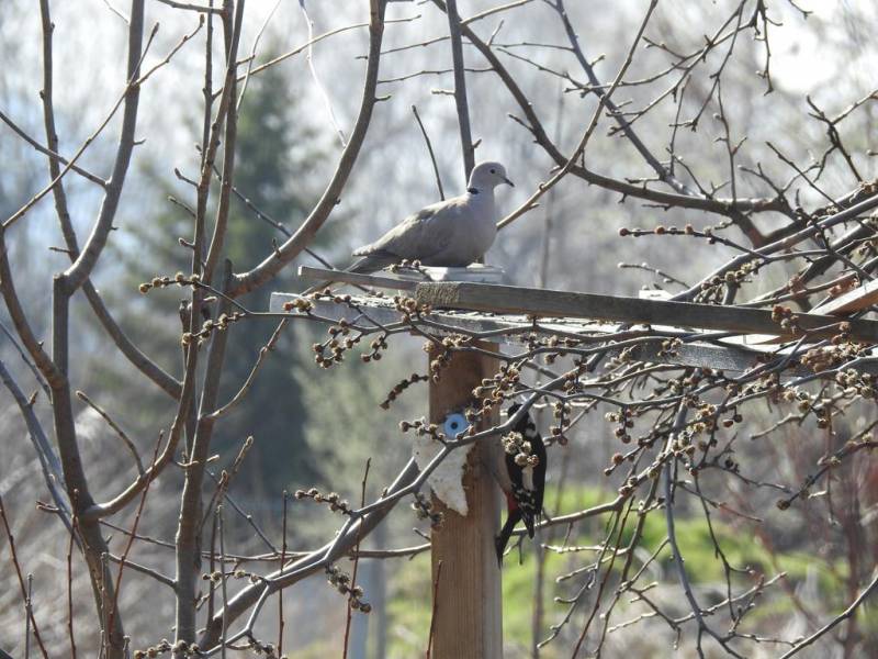 Dziś i wczoraj sierpówka przyłapana w karmniku dla sikorek: