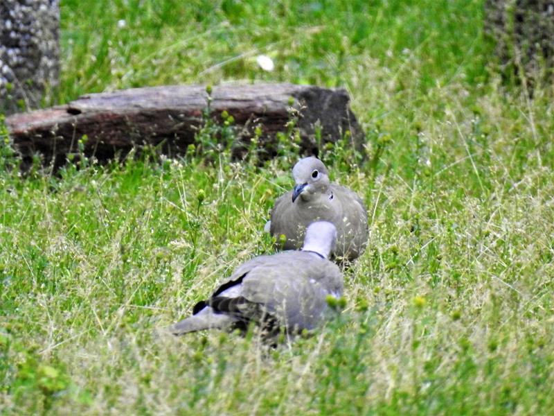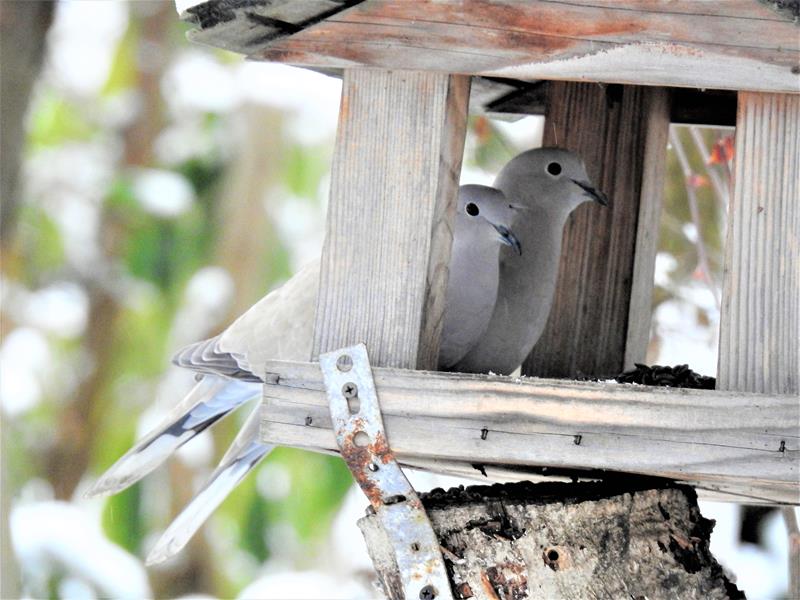 Sierpówkowa para podczas wspólnego posiłku - zdjęcia zza szyby