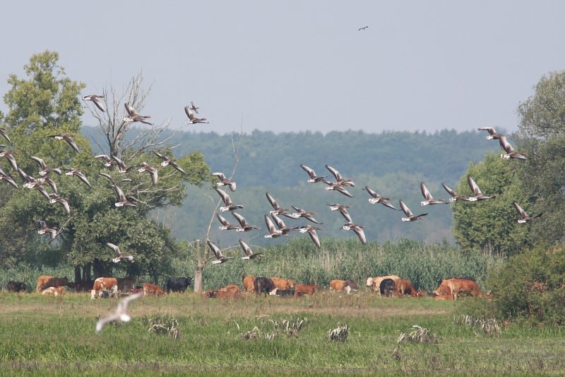 Kolejną ciekawostka jest to, ze na gęgawy można w Polsce polować. Właśnie zimą, kiedy najchętniej jeździmy na ptaki, często słychać w okolicach odgłosy wystrzałów. Po jednej stronie wału przeciwpowodziowego jest Park Narodowy "Ujście Warty", a po drugiej już nie. Więc myśliwi strzelają z wału w stronę nie-parku :mur