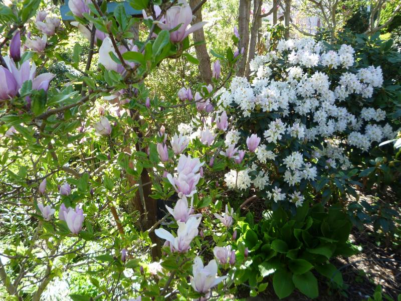 Ten krzew rh jest z podziału krzewu pokazanego wyżej, rośnie w cieniu i kwitnie kilka dni później.