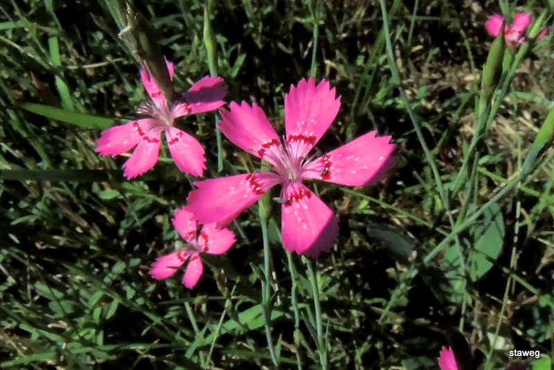 Goździk kropkowany zawsze łatwo wypatrzyć w czasie kwitnienia - kwiaty mimo że niewielkie rzucają się w oczy od razu. Często widuję go na suchych murawach. Nie lubi wapnia w podłożu, może więc być wskaźnikiem gleby kwaśnej. W uprawie jak i wszystkie goździki po kwitnieniu najlepiej przyciąć.