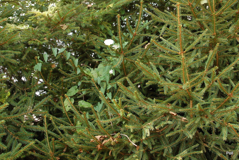 Kielisznik zaroślowy umie się sprytnie wspinać po wszystkim, co napotka po drodze. Najwięcej walczyłam z nim na wilgotnych miejscach, ale kieliszniki na zdjęciach poniżej, rosną na bardzo suchym stanowisku pod świerkami