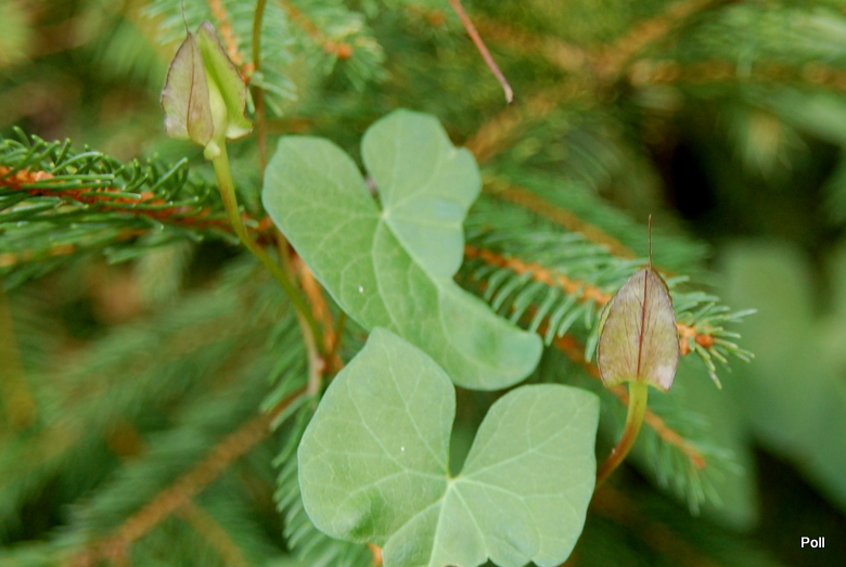 Liście wydłużone, trójkątno-strzałkowate osadzone są na długich ogonkach.
