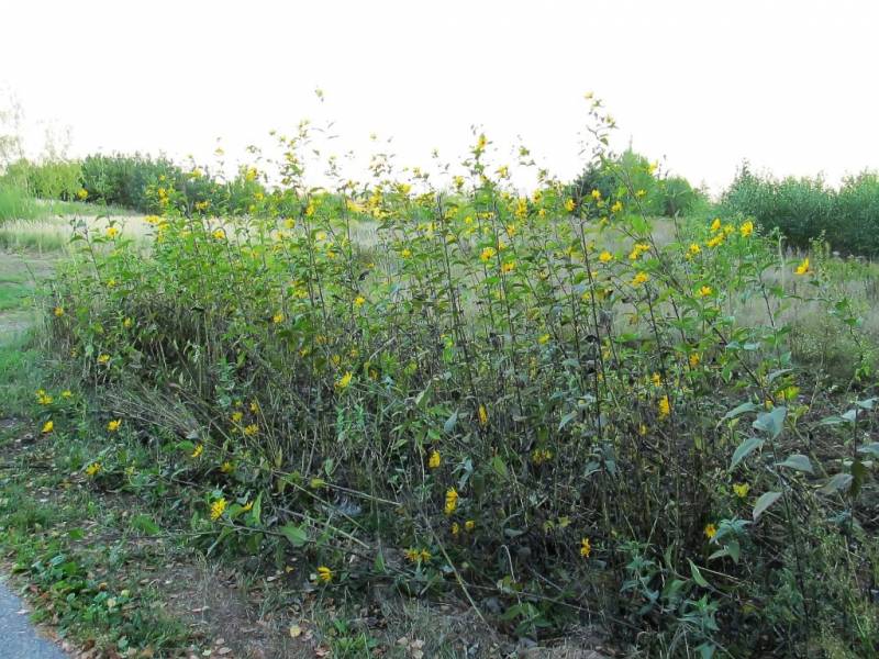 Pisałem na początku, że będę miał zamiar wykopać i posadzić to owe cudeńko gdzieś z dala od zabudowań . Jednakże dwa dni temu poszedłem na spacer, by zobaczyć jak wyglądają kwestie grzybowe i ku mojemu zdziwieniu spotkałem kilka miejscówek z topinamburem. Jedyne co mnie ciekawi to to...jak się tam te rośliny znalazły?? Chyba wykopię kilka i skosztuję