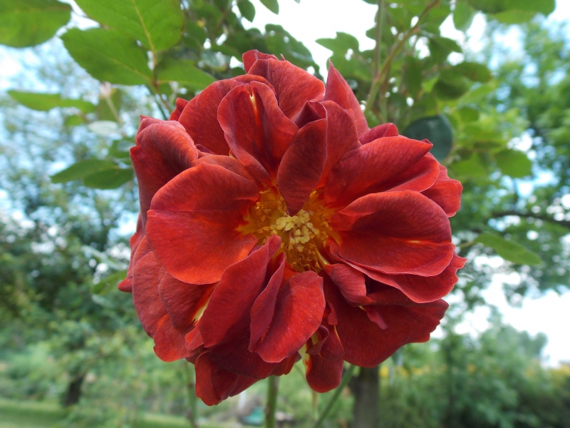 Czerwono-brązowe kwiaty średniej wielkości. Pachnie delikatnie. Kwitnie cały sezon.
