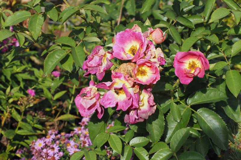 Róża 'Weg der Sinne' w kompozycji z driakwią.