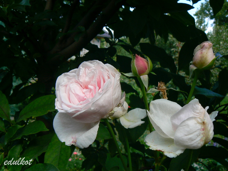 Na potwierdzenie tych ostatnich słów o tej pięknej ale bardzo delikatnej róży chyba jedyne zdjęcie z tego roku, widać jak wyglądają kwiaty i pąki przy deszczowej pogodzie.