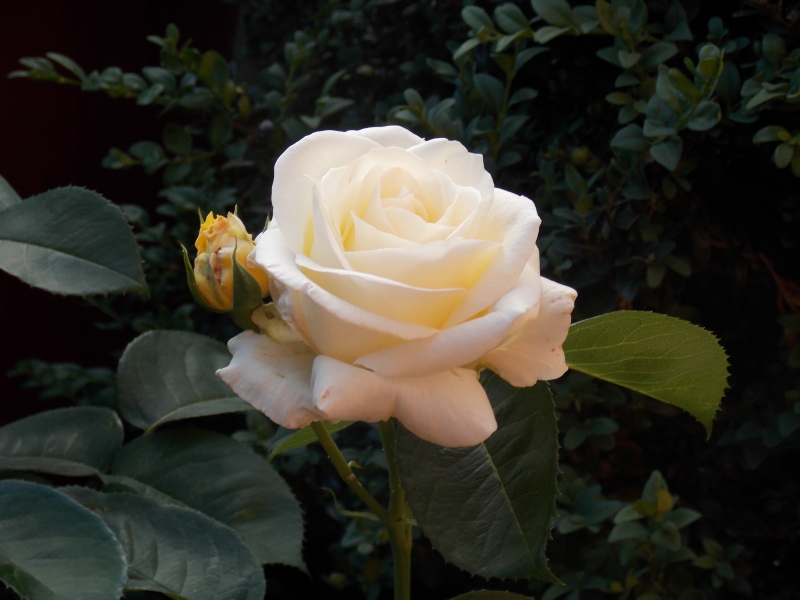 Ma wielkie kwiaty, zdrowe błyszczące liście, kremowe kwiaty - w środku .masłowe'.