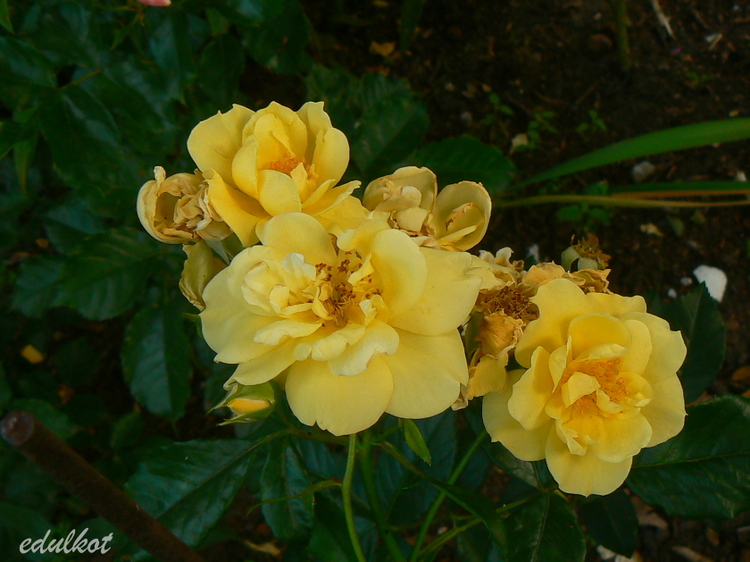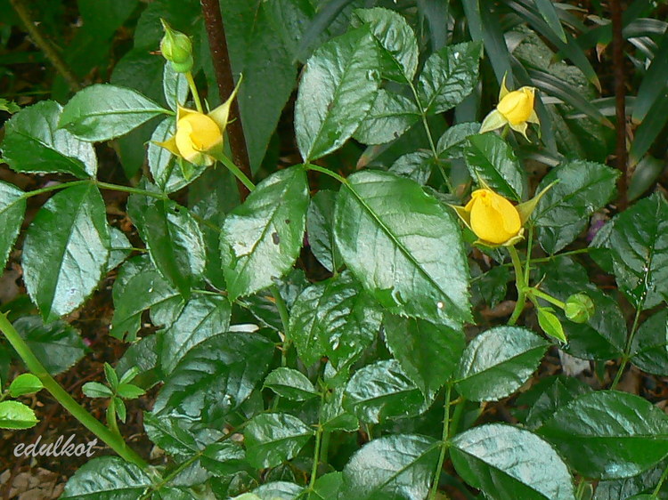 Kwiaty: małe, półpełne, żółte, w dużych gronach kwitnie cały sezon, samoczynnie odpadają,