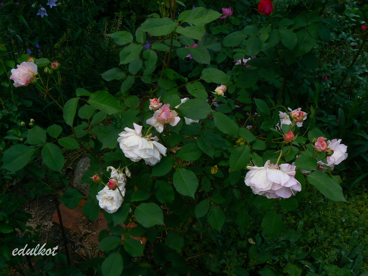 Mogę potwierdzić jedynie to co napisane powyżej, ładny kształt kwiatów, zgrabny krzak, u mnie nie przemarza, u mnie pojedyncze kwiaty nie są trwałe , ale mają patelnię w południe , a potem brak słońca. Kwitnie dobrze mimo krótkiej ekspozycji na słońce, zdrowa. U mnie wyraźna przerwa między pierwszym a drugim kwitnienie. Na zdjęciu 5 krzaków razem.