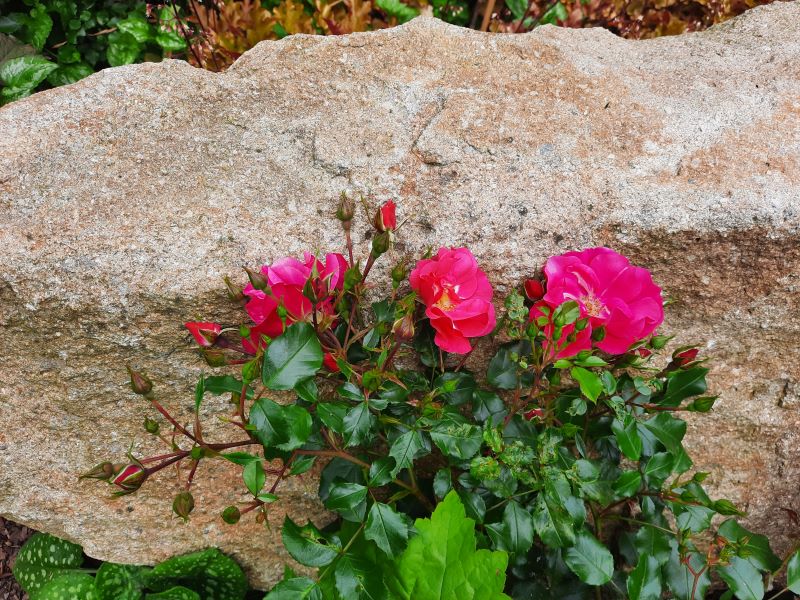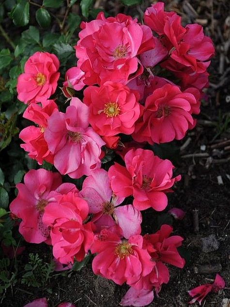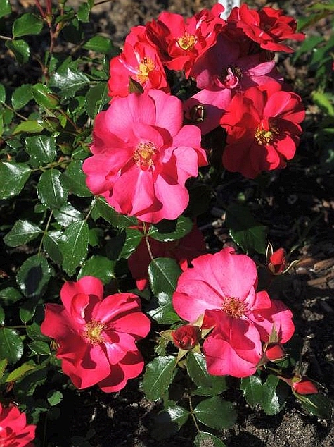 Odmiana róży okrywowej o intensywnie różowych kwiatach ok. 5 cm. i bardzo błyszczących ciemnych liściach.