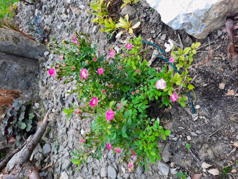 Karłowa odmiana róży, przypominająca krzewinkę, o bardzo gęstym, poduchowatym pokroju. Roślina dorasta zaledwie do 10 cm wysokości i 20-30 cm szerokości.