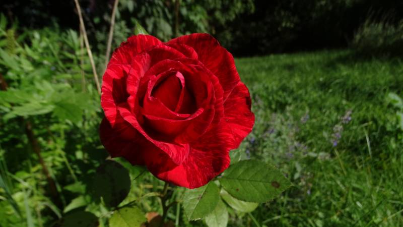 Red Intuition ma te niesamowite, marmurkowe płatki – czerwone z ciemnymi, nieregularnymi smugami i plamkami, jakby ktoś je ręcznie malował. Kwiaty są duże, pełne, klasycznie herbaciane w kształcie i pięknie, choć niezbyt intensywnie pachną (delikatny, owocowy zapach).