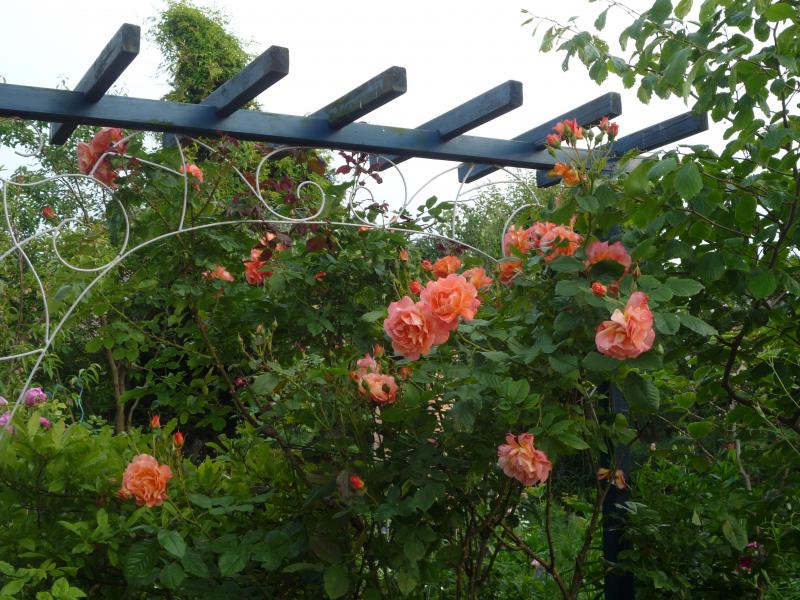 U mnie obok rośnie róża Lustige i czerwona stara róża NN