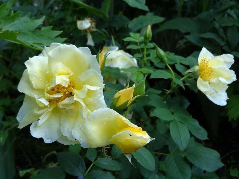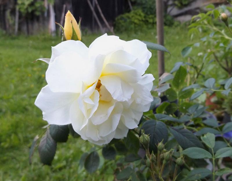 U mnie: kwiaty o krótkiej żywotności, szybko bieleją, pachną ładnie. Krzew nie choruje. Wypuścił w tym roku prawie dwumetrowe pędy. Kwitnie ciągle w sezonie, chociaż skromnie. Ma piękne kolczaste pędy. Lepiej posadzić dalej od ścieżki.