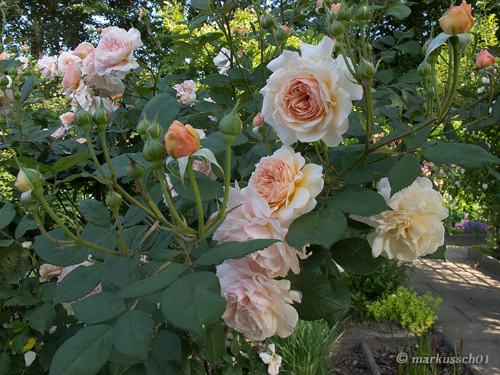 Krzew w sprzyjających warunkach powinien być climberem do 1,8 m, ale w moich warunkach przemarza do kopczyka i jest krzaczasta. Pędy prawie bez kolców.