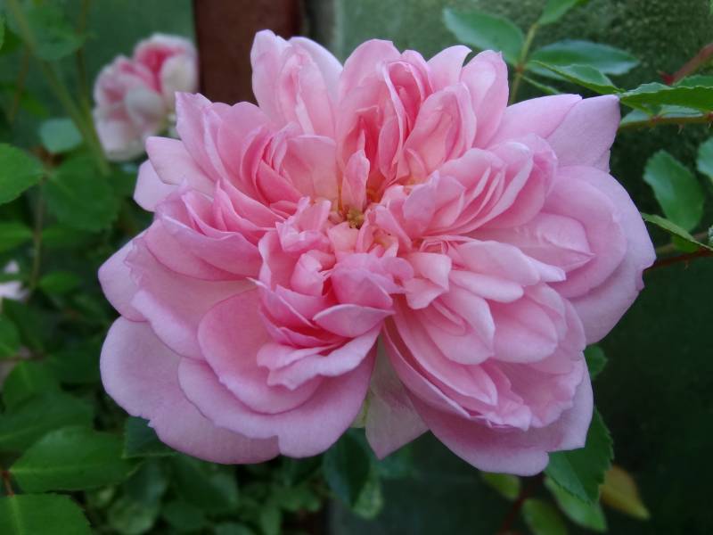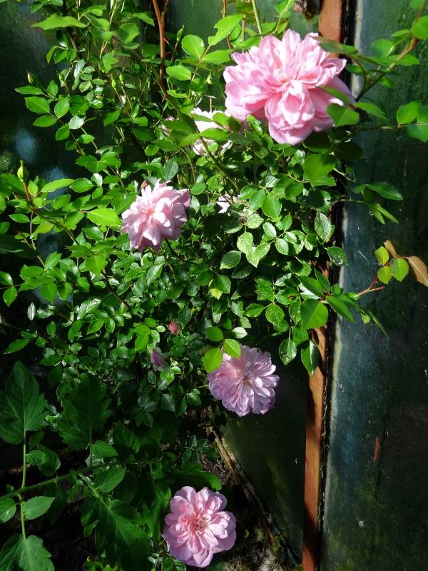 Kwiaty średniej wielkości, pełne, płaskie. Zapach delikatny określany jako jabłkowy. Kwitnie raz w sezonie w czerwcu.