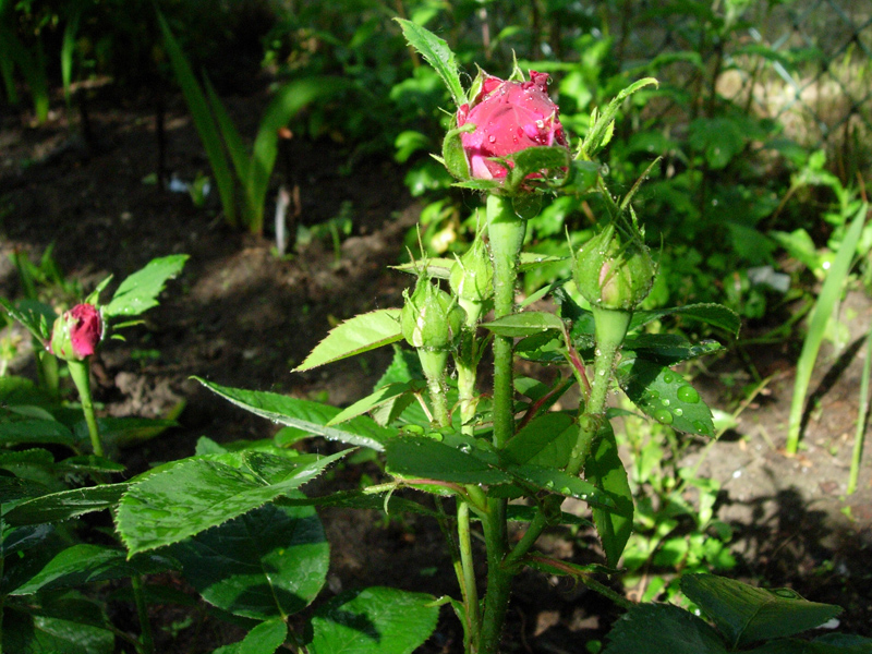 Moja królewna jest młodziutka. Dzięki temu mogę ją wam pokazać prawie od początku. Posadziłam ją w 2014 roku przy głównej ścieżce ponieważ wyczytałam, że nie ma kolców. Sadzonka była ładna więc bujnęła na jakieś 2 metry. Kolców to ona nie ma, ale igiełki jak kaktus to a i owszem. Podobno tak jest tylko na młodych pędach. U mojej wszystkie były młode i nie sposób było koło niej przejść.