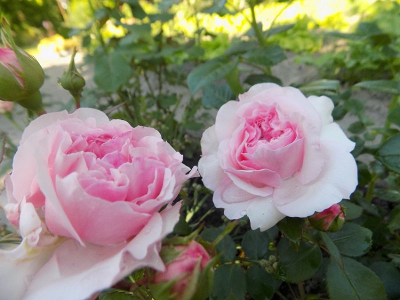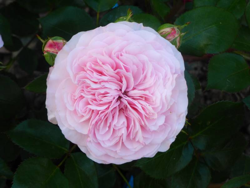 Kwiaty jasno różowe, pełne, ćwierćrozetowe