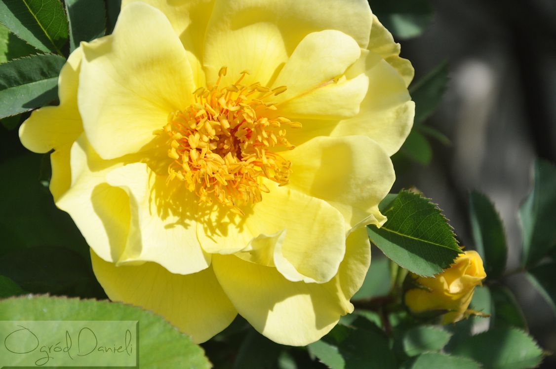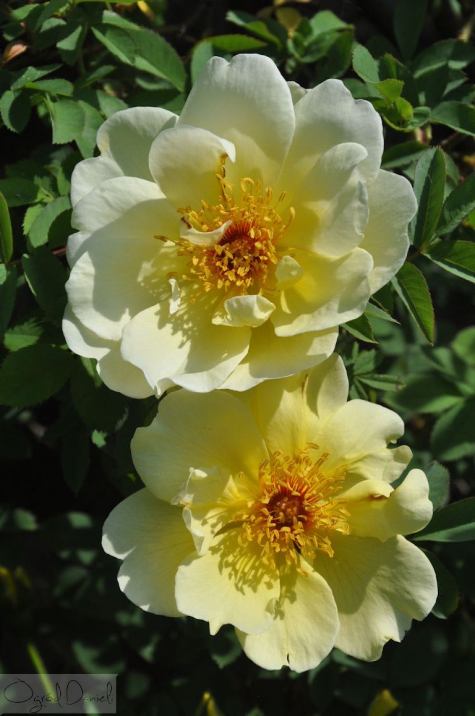 Kwiaty: żółte, półpełne o średnicy od 5 do 7 cm, pręciki złote. W miarę dojrzewania płatki stają się kremowe, a pręciki brązowo-czerwone, środek pomarańczowy.
